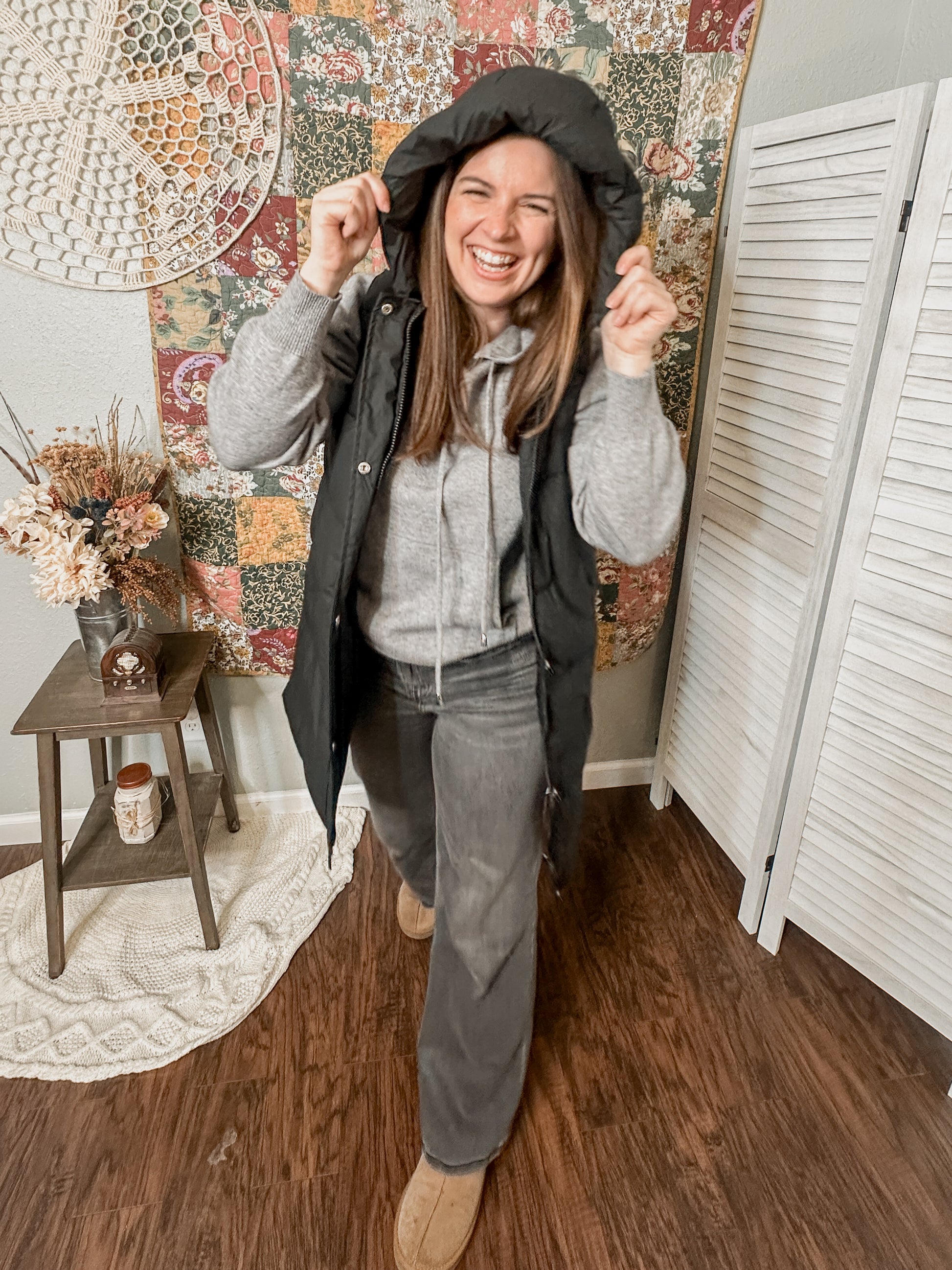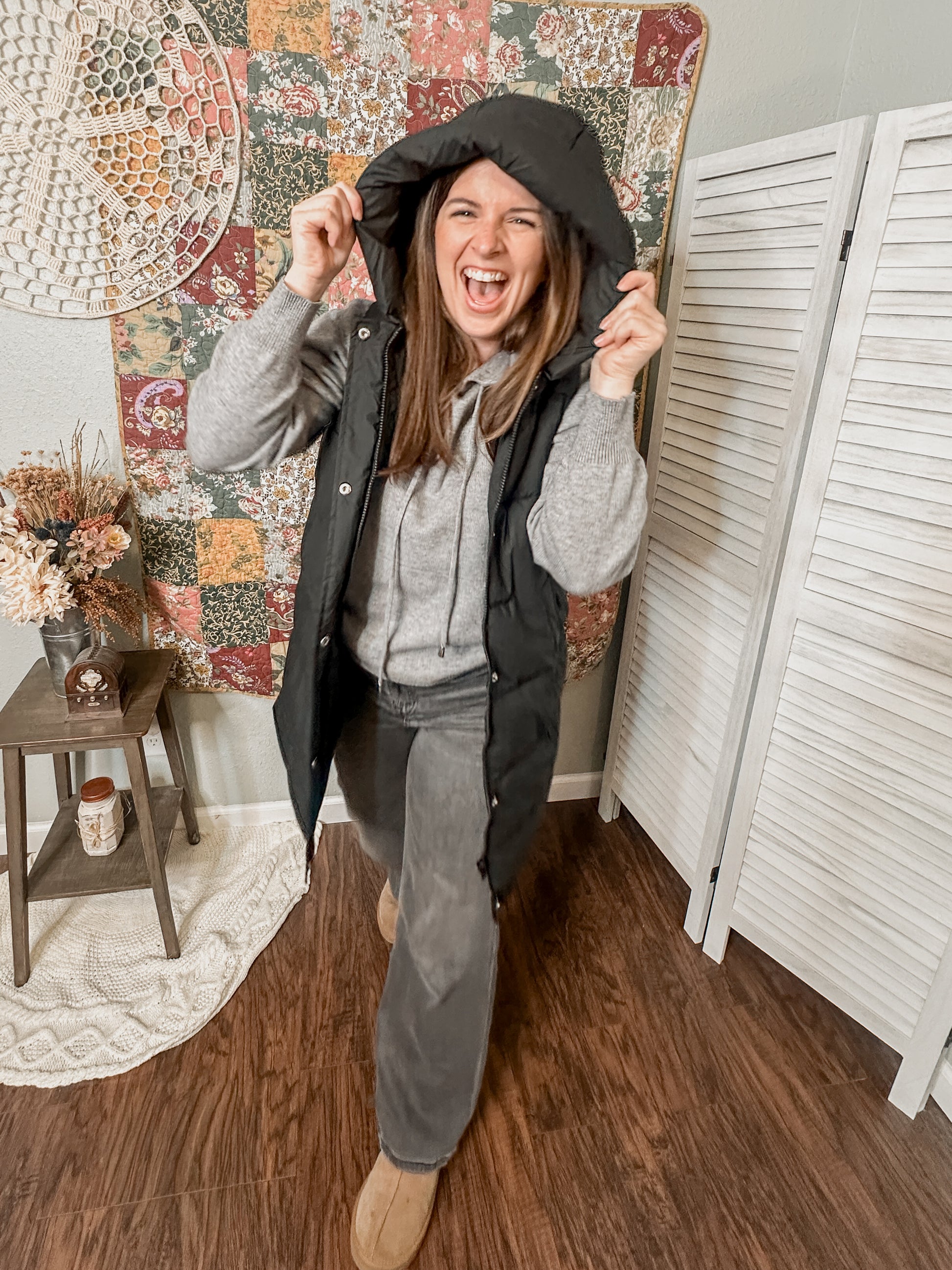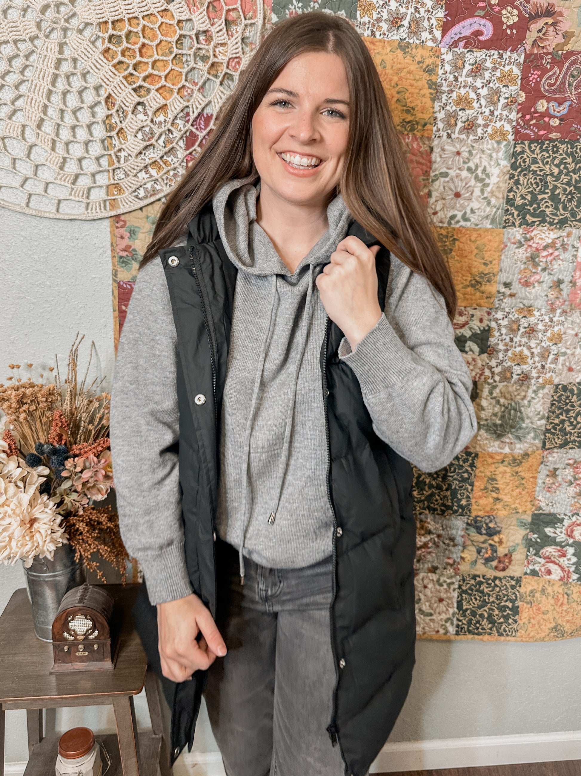 Black Hooded Puffer Vest