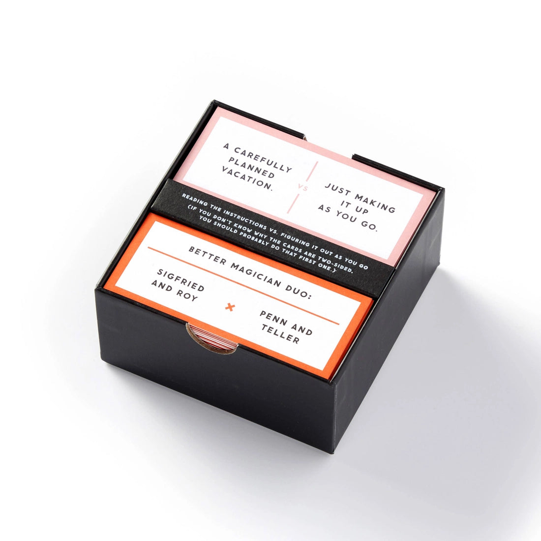 Win points for winning arguments. This social game by Brass Monkey includes 200 game cards, each featuring opposing views of hot button issues...like how to load the dishwasher like an actual human being. Just pick a side, and debate it out. There's no politics, religion, or any of that crap here. There are way more important things to fight about.