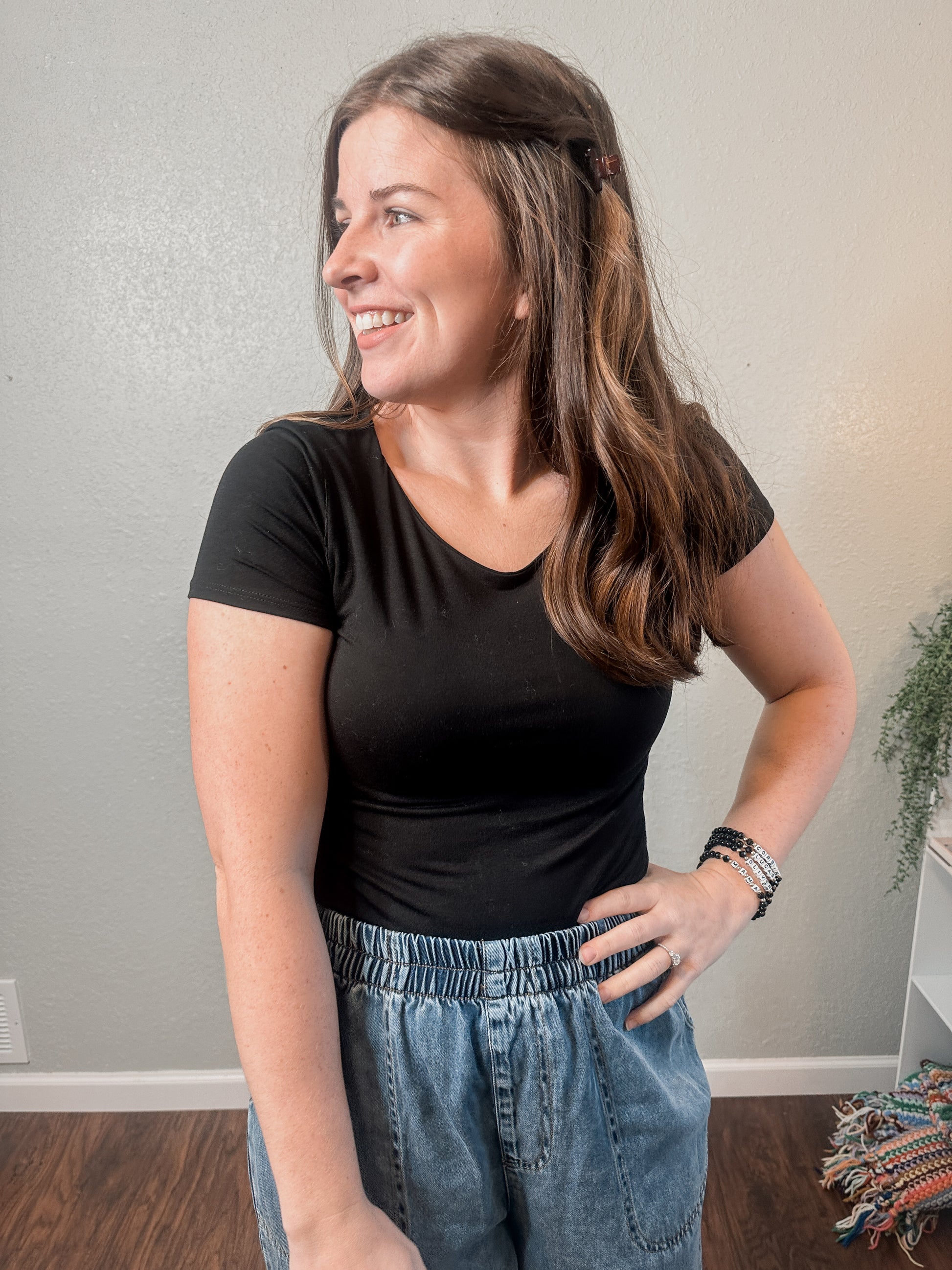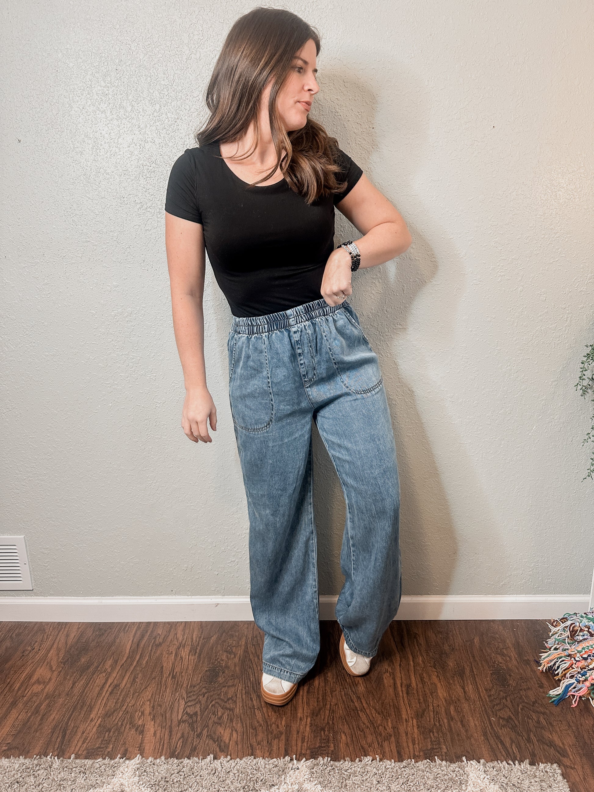 True to size. Fitted but stretchy. Kelli is in the size medium.